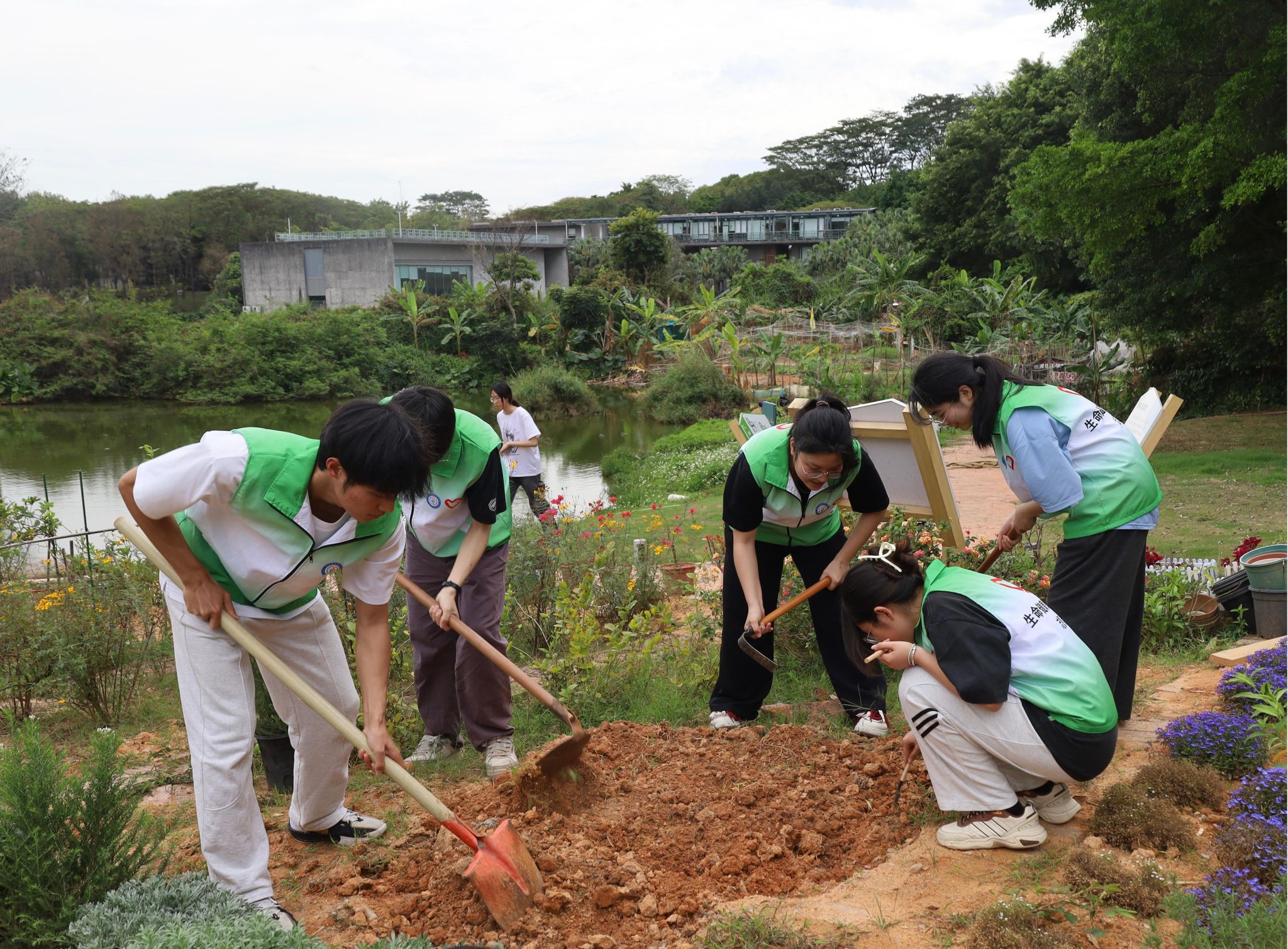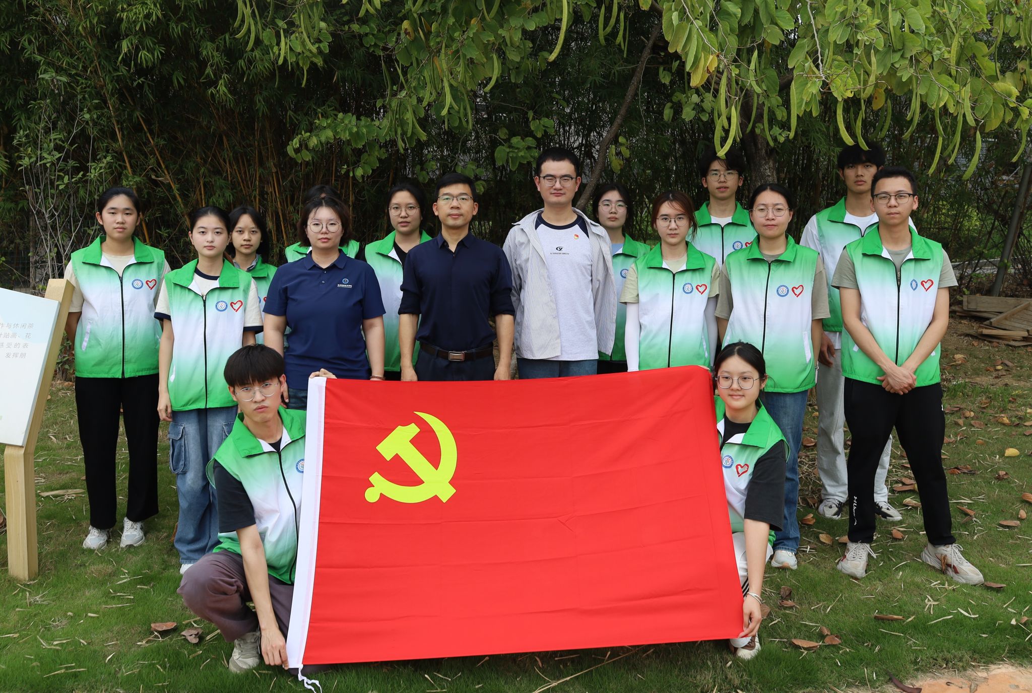 学生党支部于松山湖校区学生活动中心培根园开展“植绿于心,护绿于行”主题党日活动,让“党建红”与“生态绿”交相辉映,为绿美校园建设注入新活力。