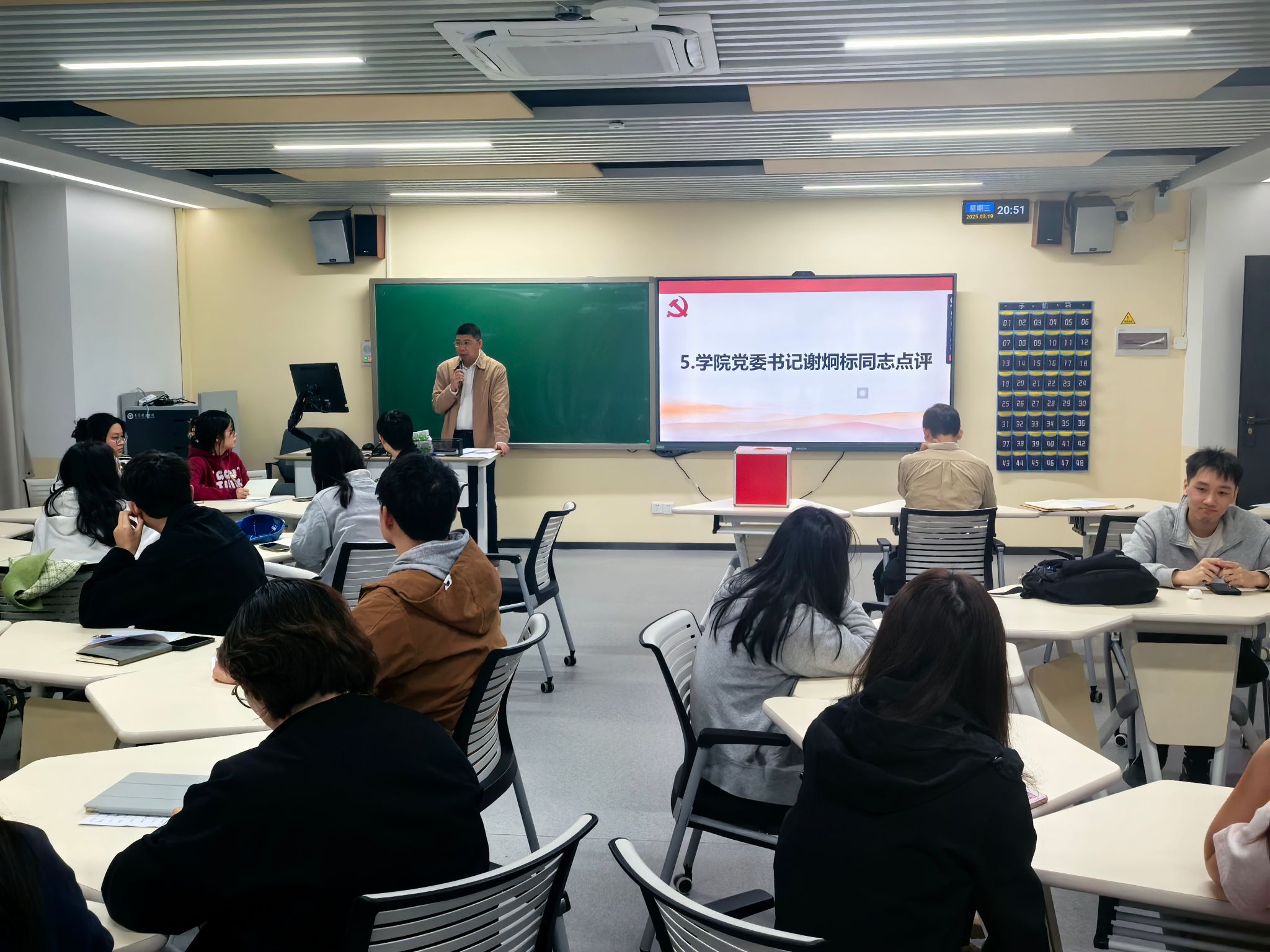 学生党支部于6D304课室召开2024年度组织生活会和开展民主评议党员,学院党委书记谢炯标列席指导会议。
