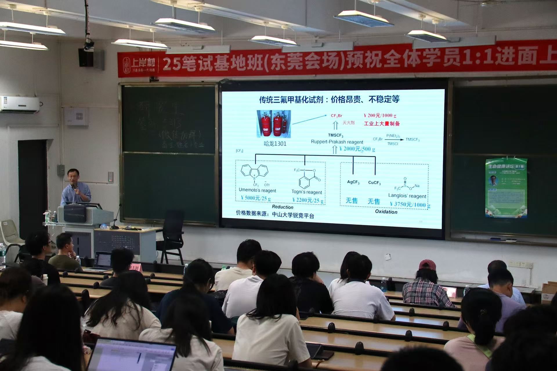 在学术报告环节,李苏华教授作了题为《从基础研究到产业转化—关于有机合成方法学的一点思考》的专题讲座。李教授首先介绍了新试剂、新反应和新配体的发展以及重要化学品的新型工业路线开发,随后重点介绍了利用大宗化学品烯烃、环氧或一氧化碳高效制备具有高经济价值的化工产品的技术路线及其相关的产业转化。在提问环节,师生们与李教授积极互动,现场讨论交流热烈。