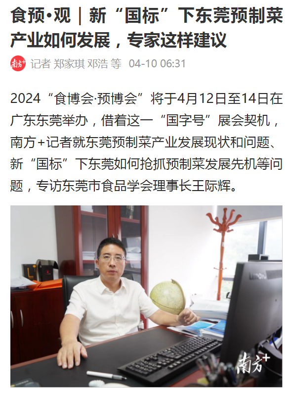 院长、东莞市食品学会理事长王际辉教授。王际辉表示,“前一阶段社会上对预制菜产业存在不同声音,部分预制菜产品存在质量问题,其根源是缺乏相关规范。近日市场监管总局联合教育部、工业和信息化部、农业农村部、商务部、国家卫生健康委印发《关于加强预制菜食品安全监管 促进产业高质量发展的通知》,首次在国家层面明确预制菜范围,对预制菜原辅料、预加工工艺等进行界定。这一文件的出台非常及时,十分必要,是对我国预制菜产业创新发展的重大利好。随着我国预制菜产业标准体系的不断完善,预制菜产业将进入新的发展阶段,我们共同期待更多的、更健康的预制菜产品涌现,满足消费者的需求。”