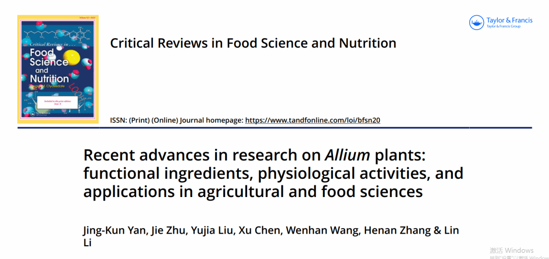化学工程与能源技术学院闫景坤教授(第一作者、通讯作者)在国际食品Top期刊《Critical Reviews in Food Science and Nutrition》(IF:11.208, 中科院一区)发表了题为“Recent advances in research on Allium plants: functional ingredients, physiological activities, and applications in agricultural and food sciences”的综述论文。
