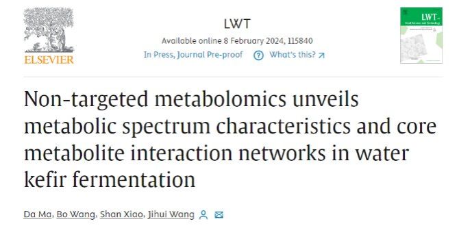 王际辉教授团队于国际食品顶级期刊《LWT - Food Science and Technology》在线发表题为“Non-targeted metabolomics unveils metabolic spectrum characteristics and core metabolite interaction networks in water kefir fermentation”的研究性文章。论文第一作者为马达博士后,通讯作者为王际辉教授。