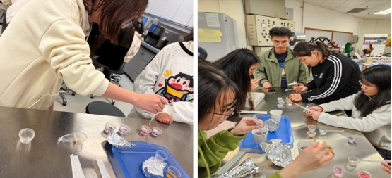 随后,同学们与香港理工大学食品科学及营养学系的学生们一起上了一堂食品感官评定和食品工艺学实验课。通过精彩的课程讲解和精心设计的实验环节,同学们掌握了食品感官评定实验操作的基本步骤和原理,了解了理论与实践相结合的重要性,更直观感受了食品科学的乐趣。