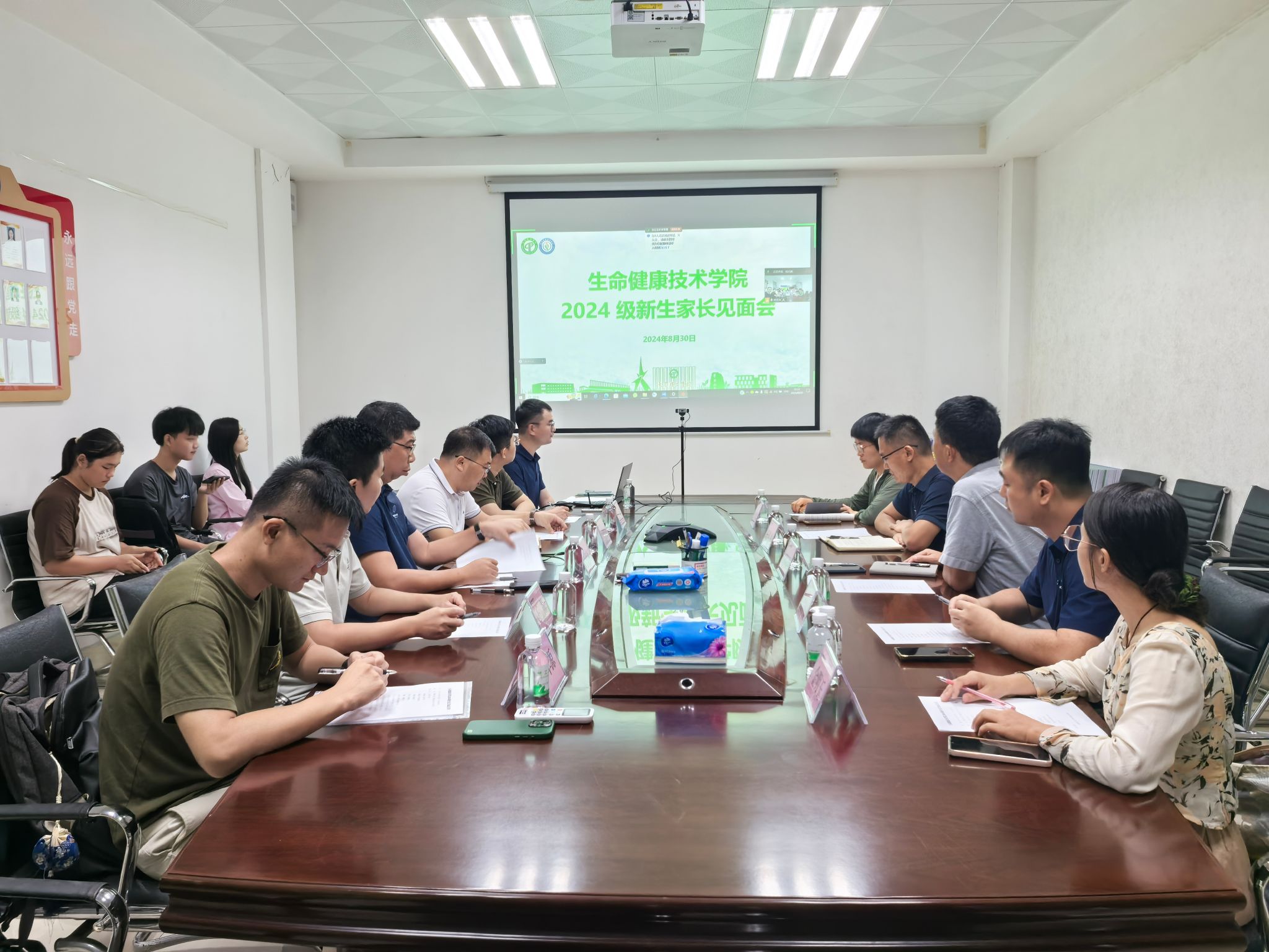 于8月30日晚上在学院办公室举行2024级新生家长见面会,院长王际辉,院党委书记谢炯标,副院长闫景坤、邓见光,2024级新生班主任及教师代表参加会议,100余名新生家长通过腾讯会议线上参会。