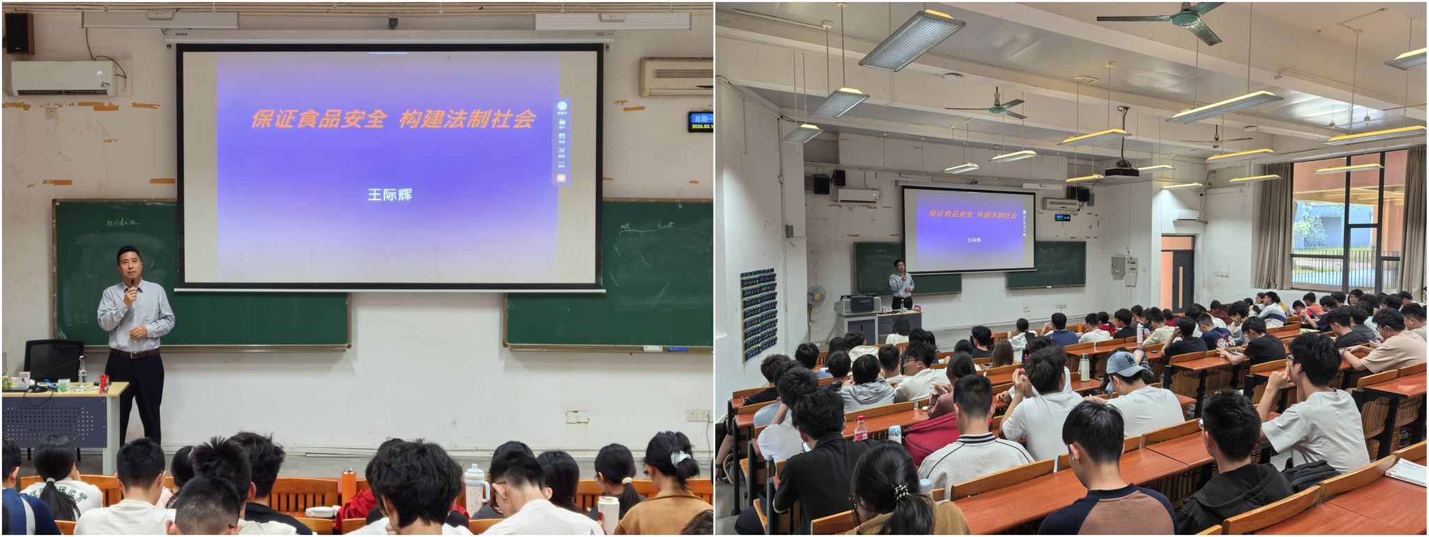 3月16日下午,王际辉围绕食品安全与法治社会构建主题,为2025智能医学工程1 - 2班、2025信息与计算科学1班全体同学授课。他结合自身研究方向与经验,从食品安全的重要性、当前领域现状与挑战出发,系统阐述了食品安全与民生福祉、社会稳定、法治建设的深层关联。针对学院专业特点,他勉励同学们将专业学习与食品安全法治建设深度融合,牢记“守护人民生命健康”的初心,培养严谨务实的科学态度和勇毅笃行的责任担当,以专业所长助力食品安全事业发展,为构建法治社会贡献青春力量。