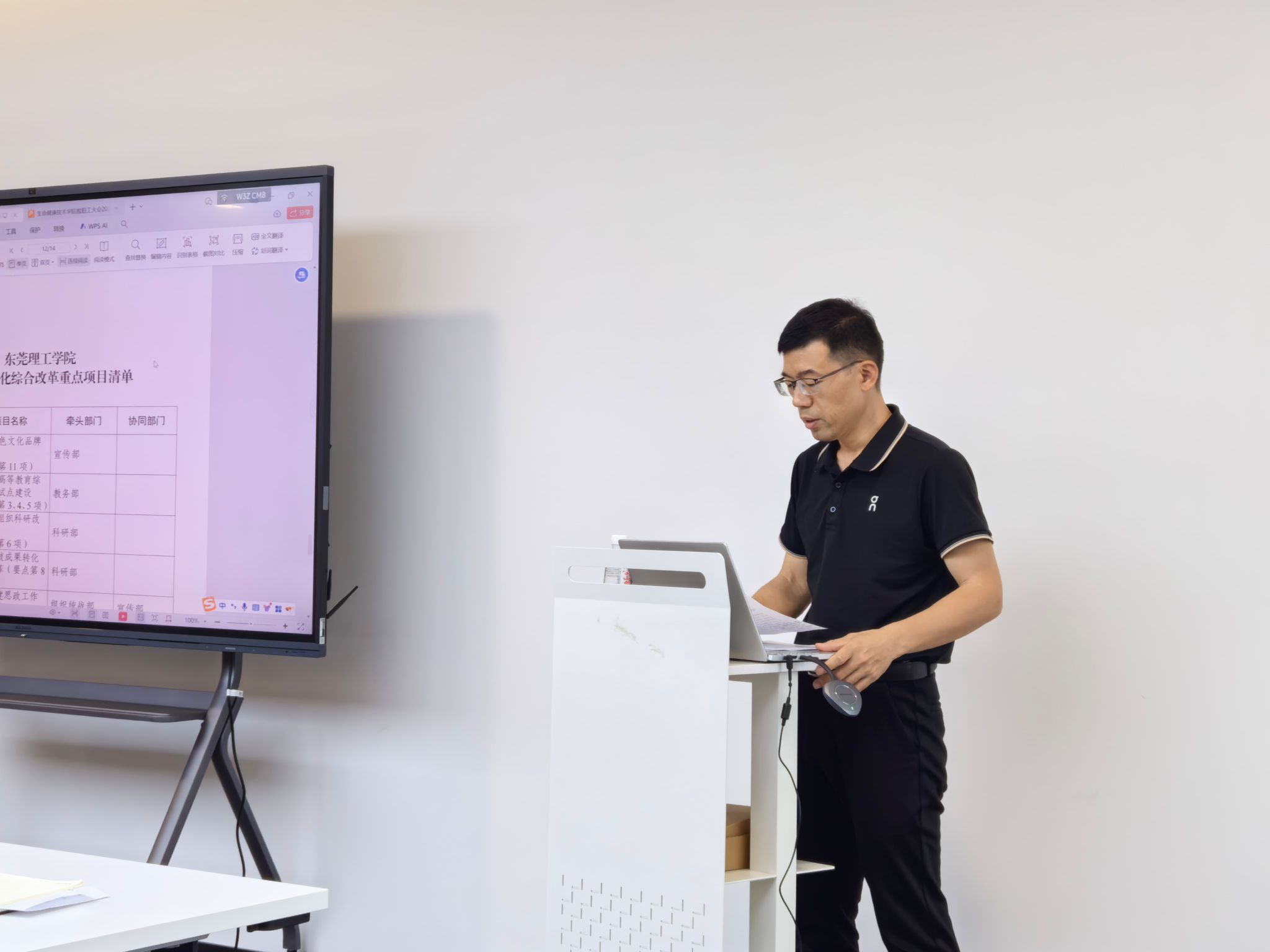 在国际合作创新区3C501召开全体教职工大会。学院党委书记谢炯标主持会议,全体教职工参会。