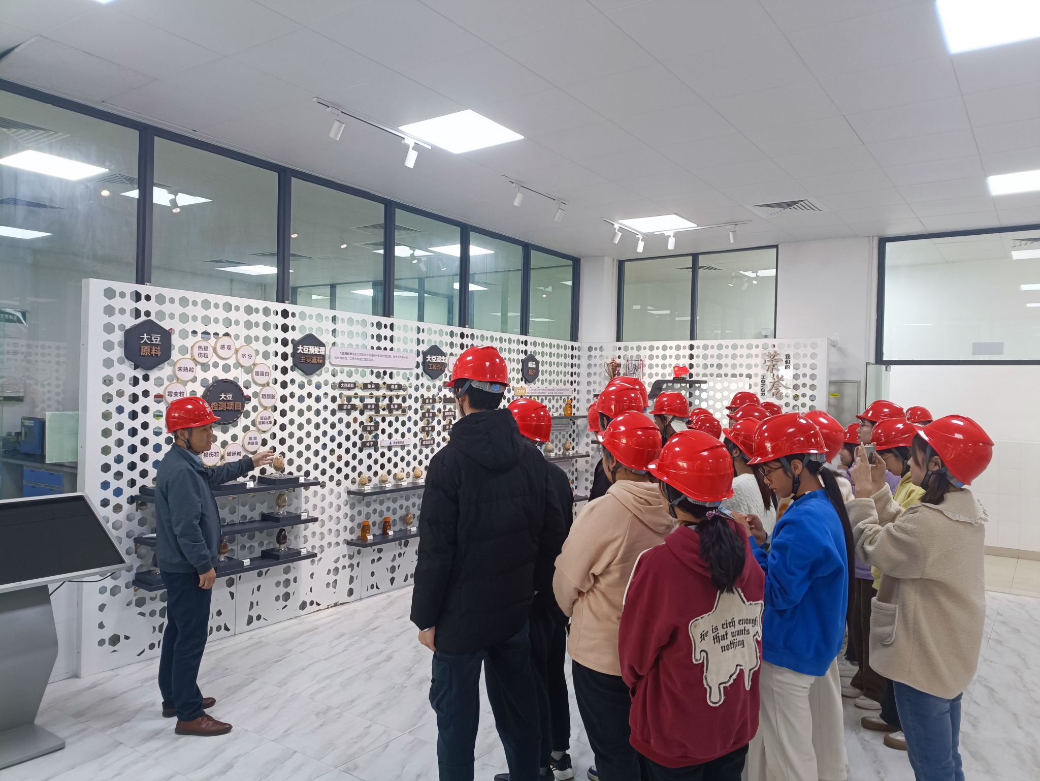 图3 中储粮工作人员讲解食用油的生产流程