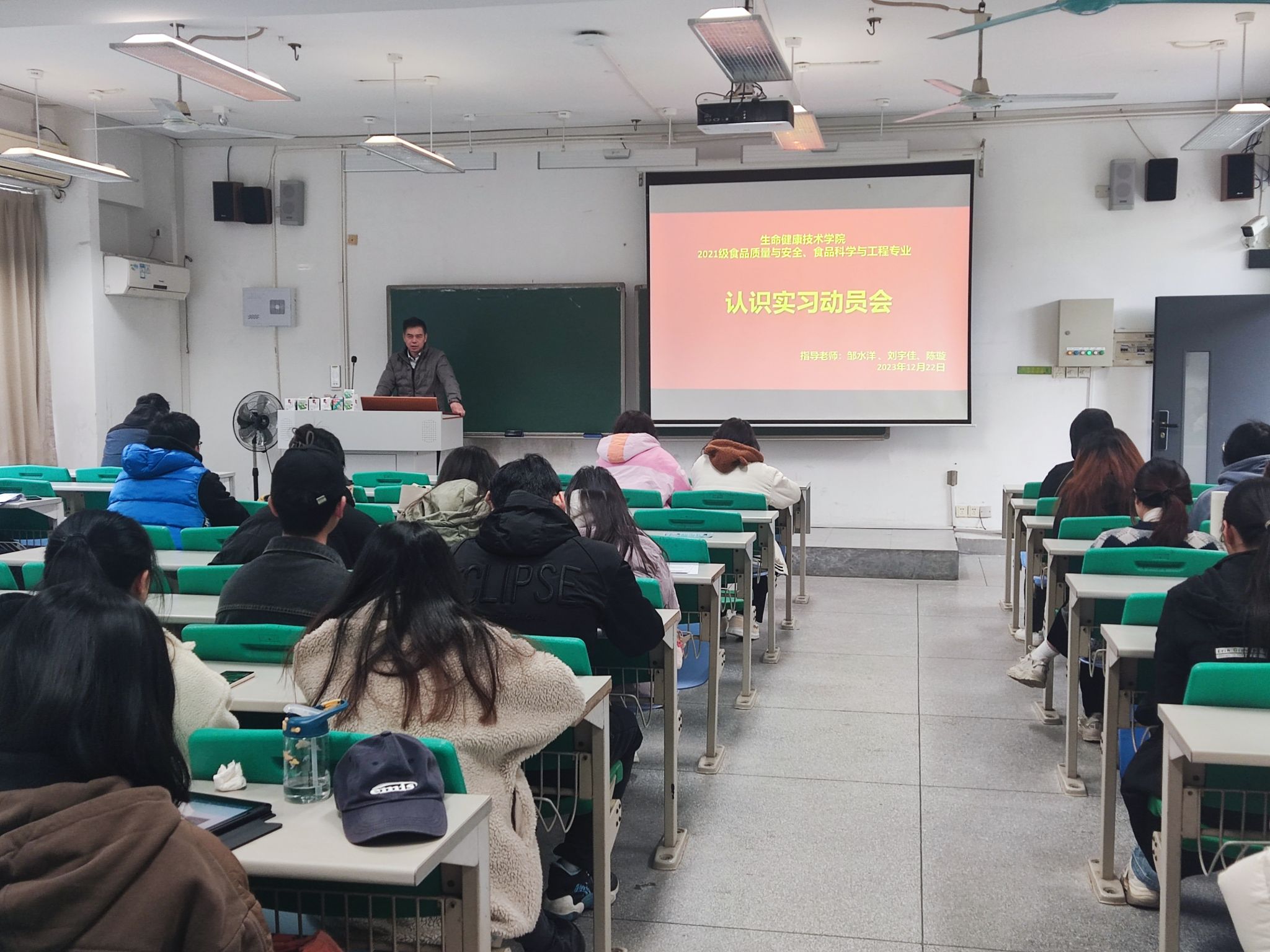 学院于12月22日先行召开了认识实习动员会,会议由营养与健康系主任刘宇佳老师主持。会上,刘宇佳老师对认识实习的意义、任务和要求做了讲解,邹水洋老师强调了实习过程的安全与纪律问题,并勉励同学们通过实习掌握必要的生产工艺、食品检验及管理经营知识,为学习后续专业知识打下良好基础。
