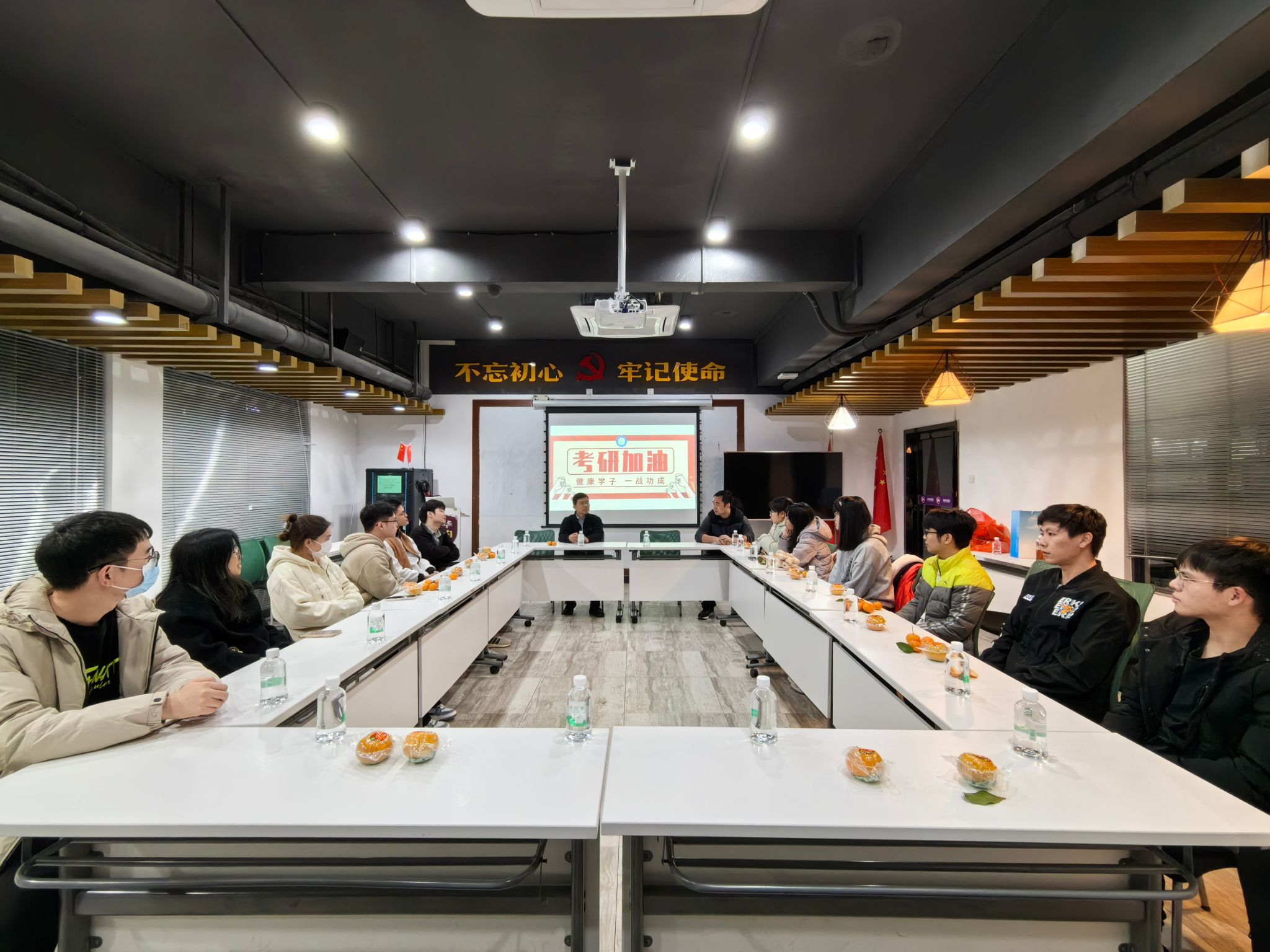 在莞华社区活动室开展2024届考研加油活动。活动由学院党委副书记葛金虎主持,毕业班班主任肖珊、刘宇佳,辅导员杨梅青、刘文渊出席,为考研学子送上暖心祝福。
