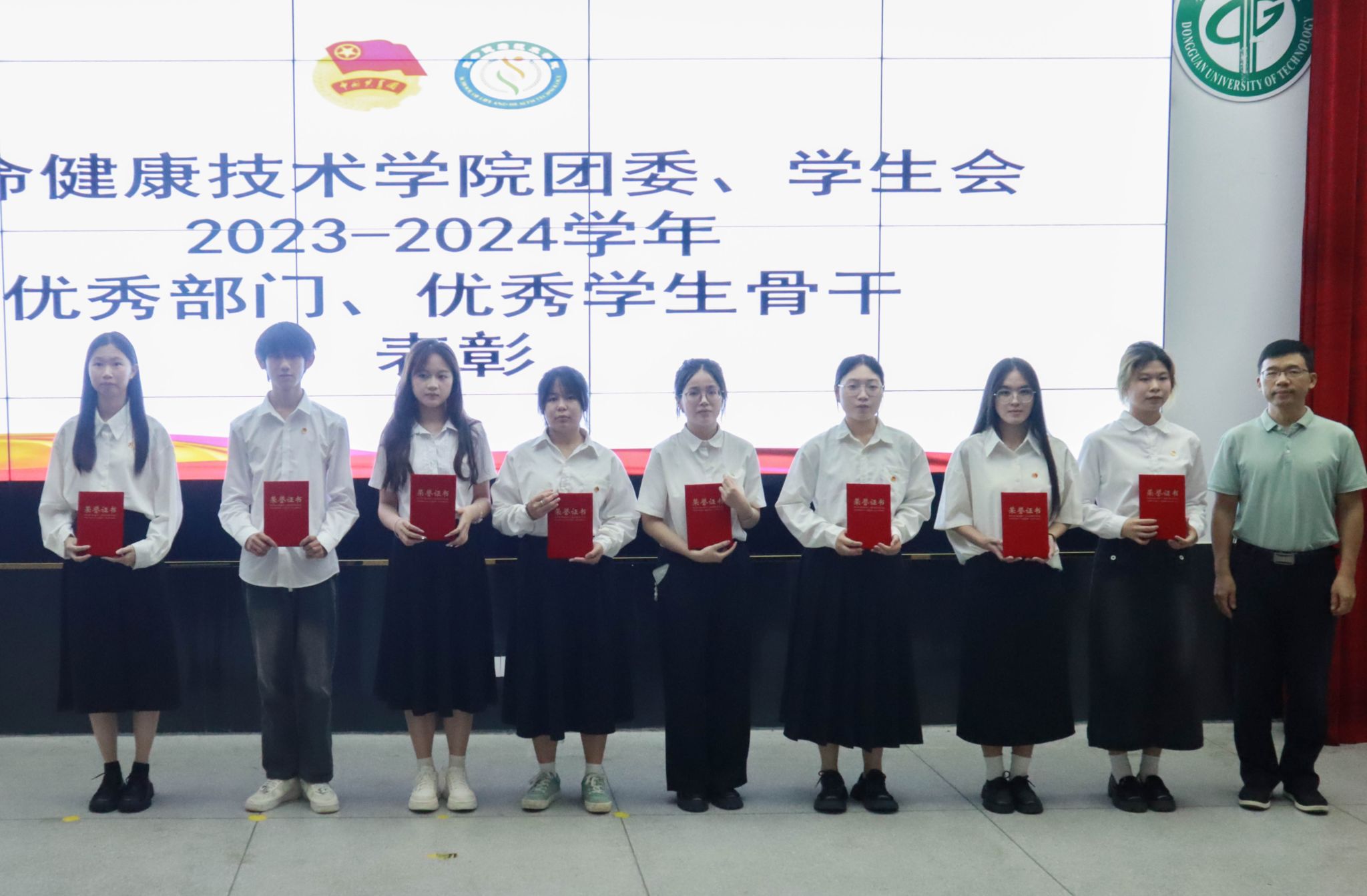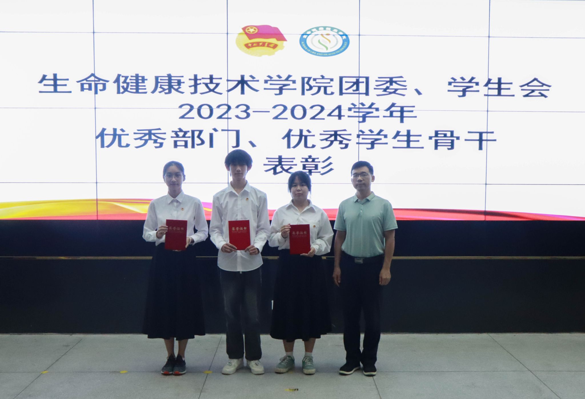 会上,学院团委、学生会各部门负责人从部门概况、重点任务完成情况、工作特色等方面对一年来的工作进行了总结,在交流经验、梳理不足的同时也明确了未来的工作方向。杨梅青宣读了2023-2024学年度“团学优秀部门”“优秀学生骨干”荣誉称号名单,葛金虎为获奖部门及人员颁奖。